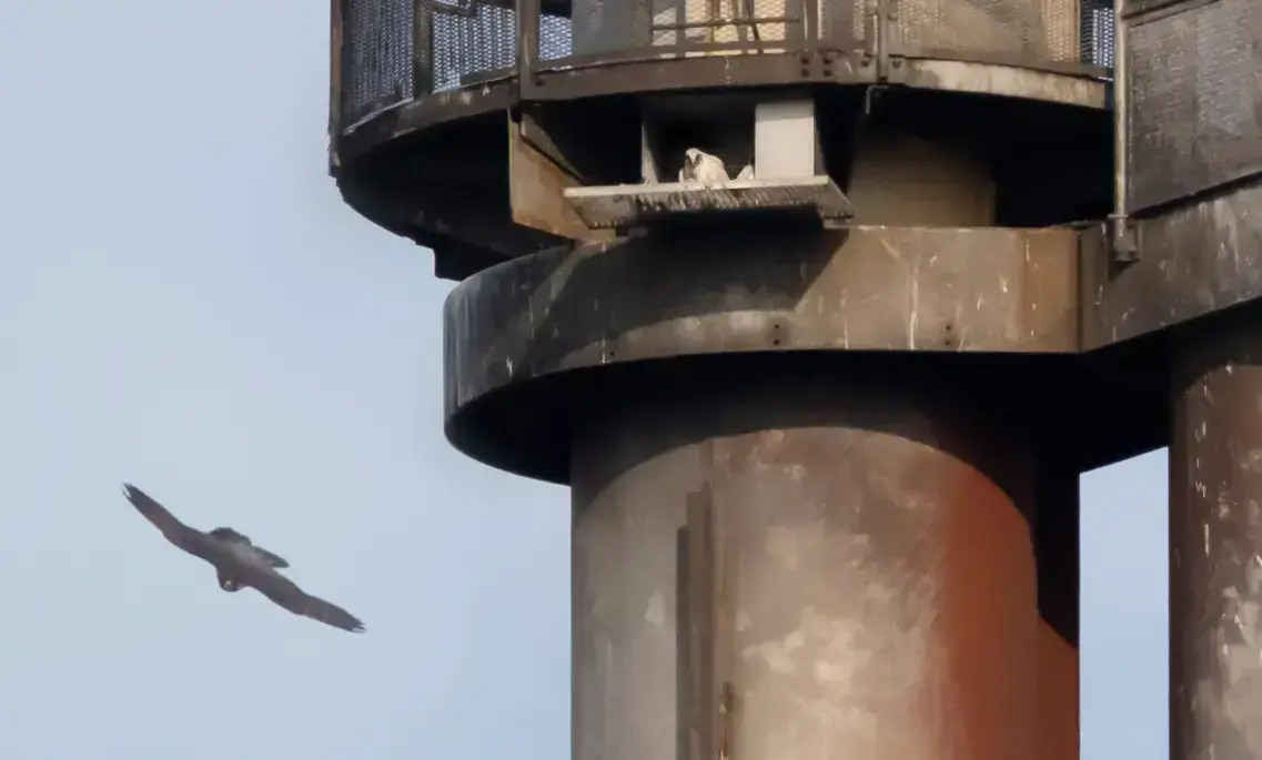 Le 27 avril dernier, le couple de Faucons Pèlerins établi depuis 2004 sur la torchère du raffinage a eu de nouveaux petits.